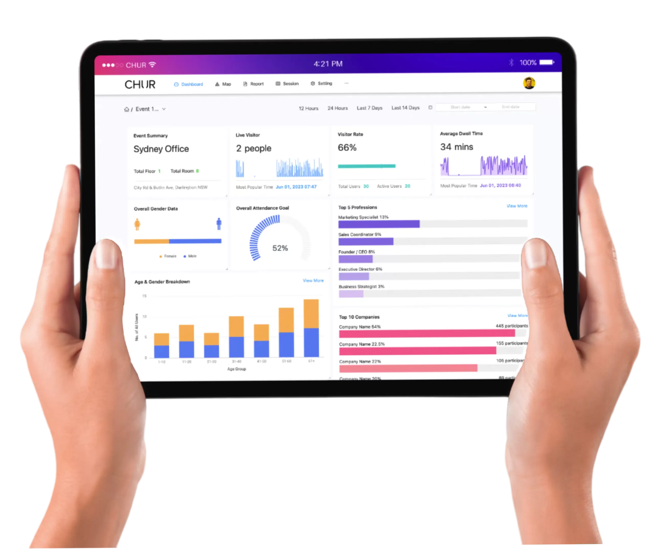 Monitor individual movements in real-time. Gain insights into attendee behaviour while ensuring privacy with opt-in tracking and secure data handling.
